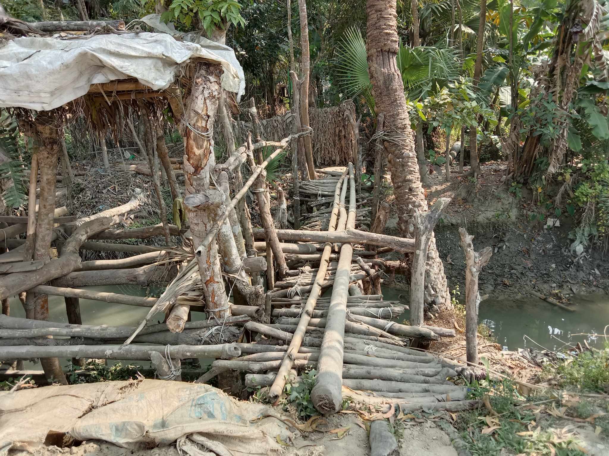 কাঠের তৈরি ভাঙ্গাপুলে ছাত্র ছাত্রীদের পারাপার।