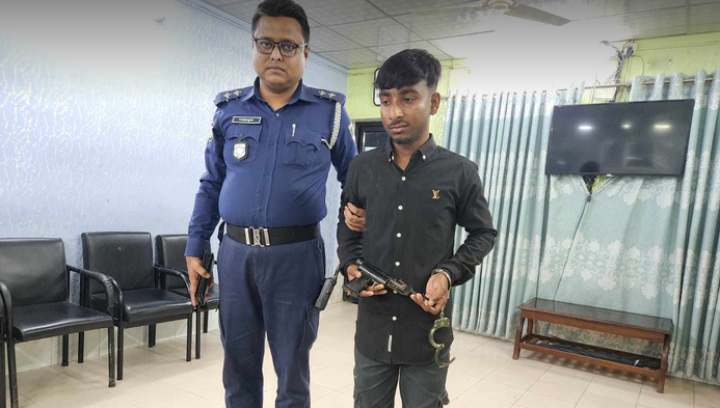 রুপদিয়া থেকে অস্ত্রসহ যুবক আটক ।