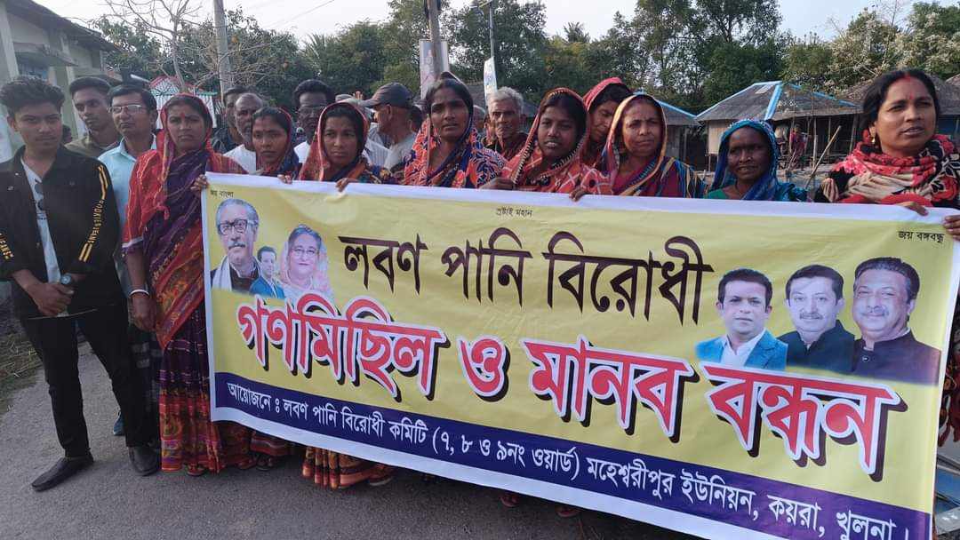 বিভাগীয় প্রধান :লবন পানি নামক বিষক্রিয়া থেকে নিজেদের জিবন ও পরিবেশ রক্ষার জন্য ‘লবন পানি বিরোধী ‘ আন্দোলন শুরু করেছে খুলনার কয়রা উপজেলার সাধারণ জনগণ।পরিবেশ রক্ষার এই আন্দোলনে নারী,পুরুষ সহ বিভিন্ন শ্রেনী পেশার মানুষ এই আন্দোলনে সংহতি জানিয়ে দাবি তুলেছে বেচে থাকার।ওয়াপদা রাস্তা কেটে হাজার হাজার স্লুইস গেট এবং পাইপ ঢুকিয়ে আবাদি জমিতে লবন পানি তুলে মাছ চাষ করছে একটি প্রভাবশালী মহল।স্থানীয় দালালদের সহযোগিতা জমির মালিকদের চাপ প্রয়োগ করে অল্প টাকায় জমি লীজ নিয়ে সেই জমি বহিরাগত এবং স্থানীয় প্রভাবশালী লীজ মালিকদের কাছে ছাব লীজ দেওয়া হয়।ফলে প্রকৃত জমির মালিক উপযুক্ত টাকাতো পায়ই না আরো চালানো হয় মানসিক নির্যাতন। প্রত্যেক বছর বর্ষা কালে যখন নদীতে অতিরিক্ত পানির চাপ হয় তখন স্লুইস গেট এবং পাইপ বসানো জায়গা ভেঙে প্লাবিত হয় গ্রামের পর গ্রাম। প্রত্যেক বছর প্রস্তুত থাকতে হয় বন্যায় ক্ষতিগ্রস্ত হওয়ার জন্য।