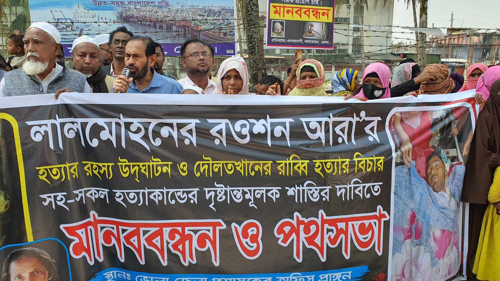 ভোলায় রওশন আরা ও রাব্বী হত্যার বিচারের দাবিতে মানববন্ধন ও স্মারকলিপি