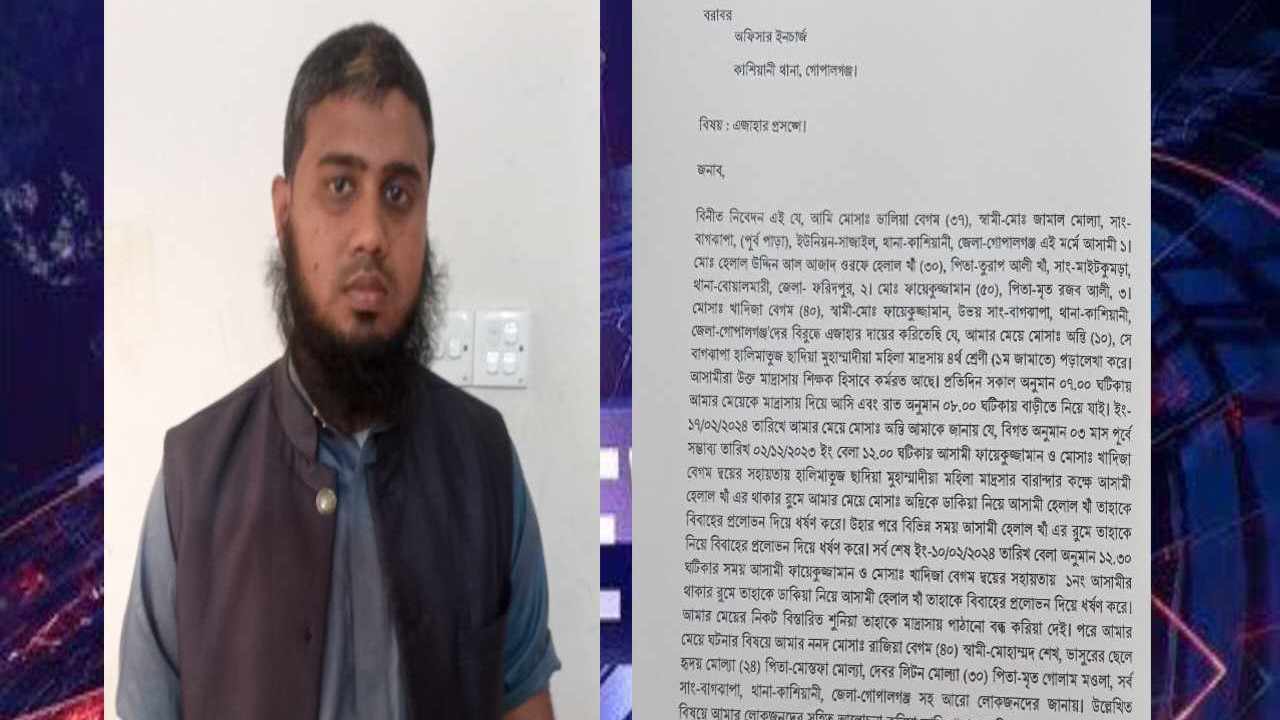 গোপালগঞ্জে চতুর্থ শ্রেণির ছাত্রীকে ধর্ষণের ঘটনায় মাদ্রাসার এক শিক্ষক গ্রেফতার