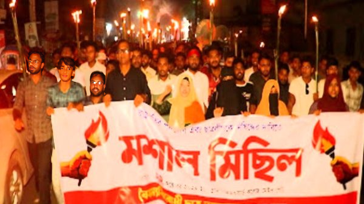 পাবনায় রাষ্ট্রপতির পদত্যাগের দাবিতে মশাল মিছিল