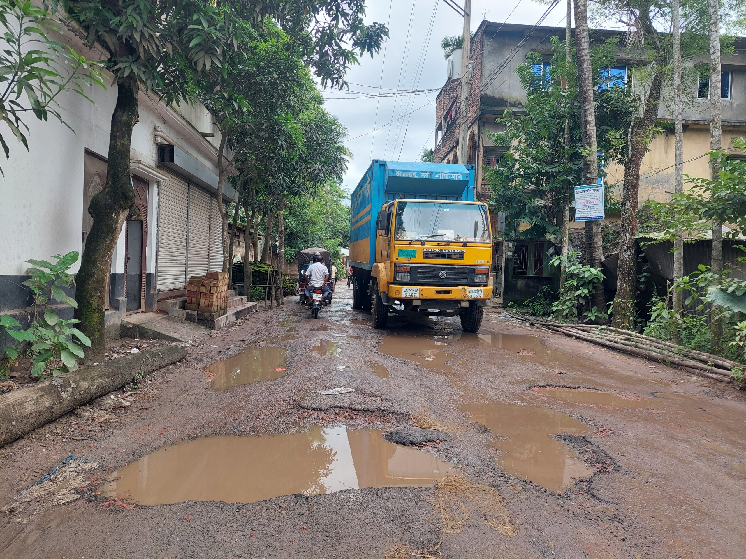 ভাঙ্গুড়া-নৌবাড়িয়া সড়কে হেলে দুলে চলছে গাড়ি আতঙ্কে শিক্ষার্থীসহ পথচারী