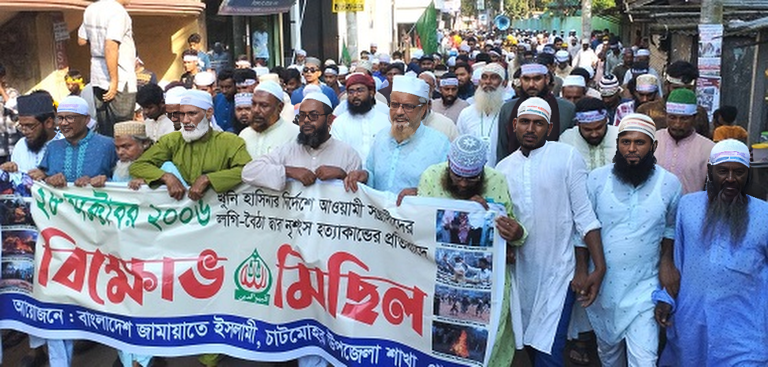 ২৮ অক্টোবর সোমবার বিকেলে চাটমোহর পৌর সদরের প্রধান প্রধান সড়কে একটি বিক্ষোভ মিছিল বের করে।এ মিছিলে নেতৃত্ব দেন উপজেলা জামায়াতের আমীর মওলানা মোঃ আবদুল হামিদ।