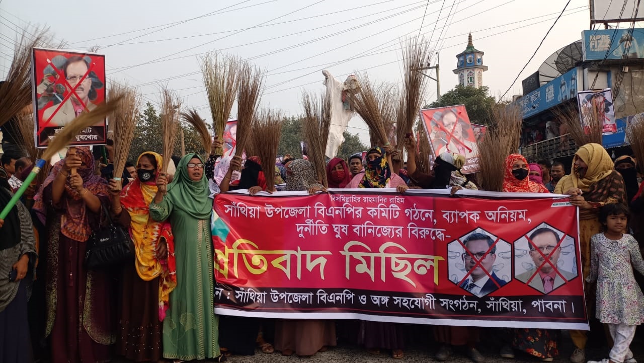 সাঁথিয়া উপজেলা বিএনপির আহ্বায়ক কমিটিতে অনিয়মের অভিযোগে ঝাড়ু মিছিল