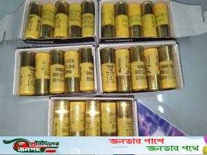 ১। একটি নীল রঙের পলিব্যাগে থাকা ০৫টি ছোট কাগজের বক্স, প্রতিটিতে ১০টি করে ১২-বোর তাজা কার্তুজ, মোট ৫০টি।